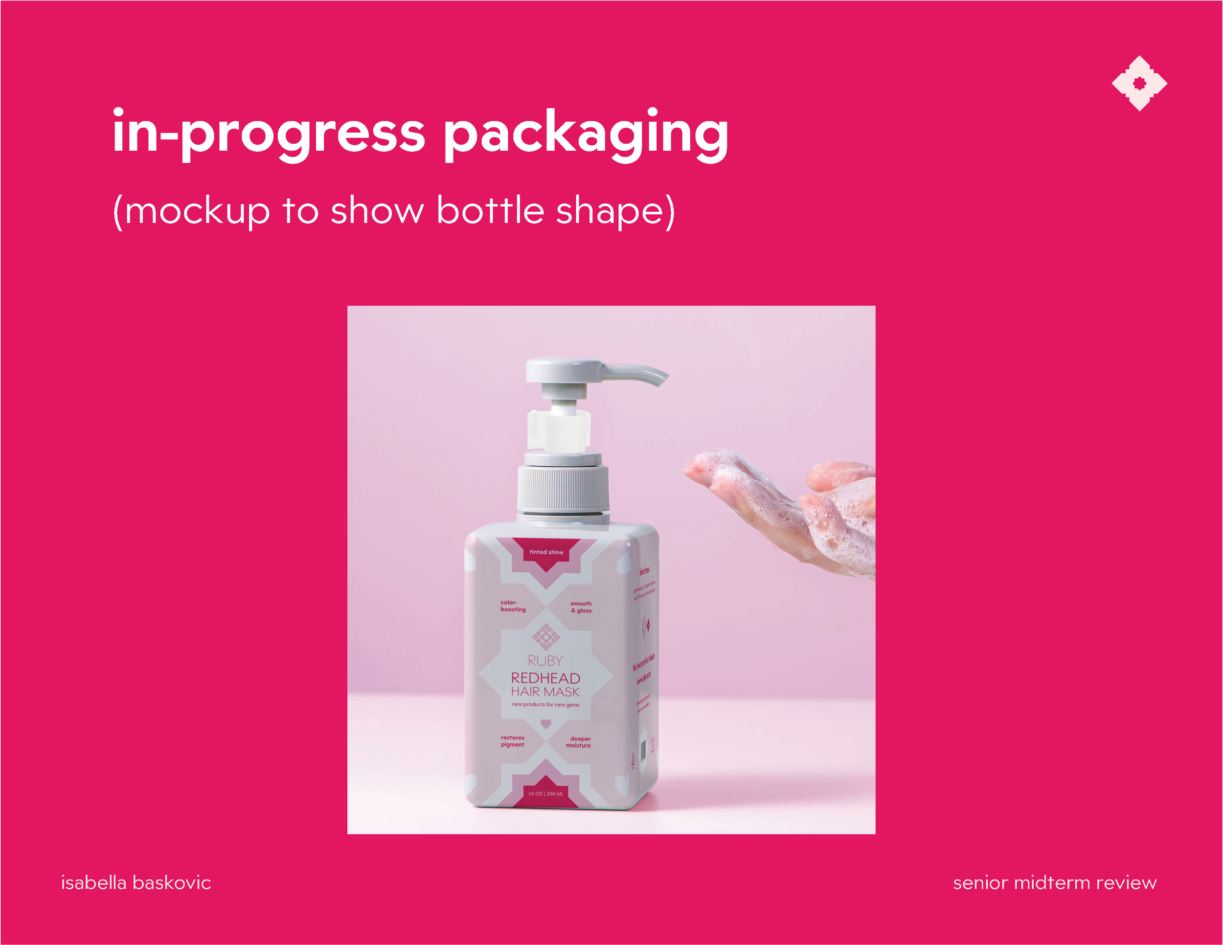 Thus far, I’ve completed the haircare portion of packaging, so I inserted a mockup of the hair mask to give you an understanding of how these upcoming dielines are going to look on the bottles.